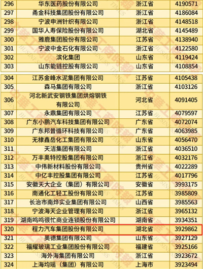 2025年中國名企500強榜單程力汽車集團連續(xù)8年入榜