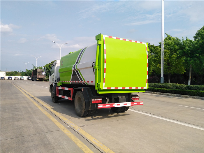 自裝卸式垃圾車優(yōu)點: 1,壓縮式垃圾車的換代產(chǎn)品; 2,容積大7.立方,3360軸距壓縮車裝載量240升垃圾桶120桶左右. 3,自重輕,燃油經(jīng)濟性高, 4,故障率低,售后率低,壓縮垃圾車液壓系統(tǒng)復(fù)雜,該車型液壓系統(tǒng)簡單,并配置高壓過濾器,保護液壓系統(tǒng),只有提升機油缸,推板油缸,后面舉升油缸。 5,該車型配置液壓反向鎖死機構(gòu),并使用硅膠密封條,可杜絕箱內(nèi)壓縮垃圾時,后門開縫漏污水,越壓縮后門鎖死越緊,后門采用壓縮垃圾站式加強型后門,抗擠壓抗變形。 湖北程力國六東風(fēng)大福瑞卡(多利卡)側(cè)裝掛桶自裝卸式垃圾車程力威牌CLW5122ZZZ6SL型自裝卸式垃圾車圖片: |