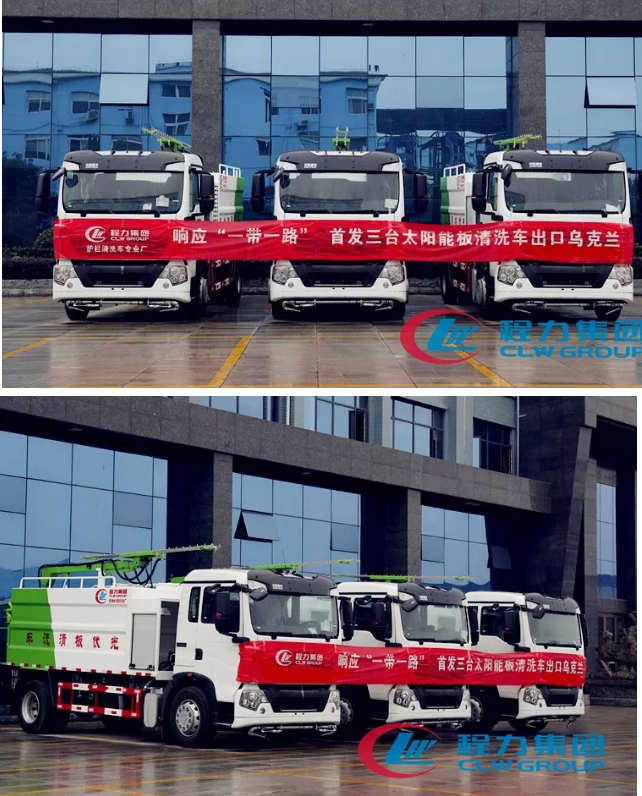 NO3:湖北程力護欄車專業廠生產的太陽能板清洗車科技風范出口烏克蘭,為中國的“一帶一路”貢獻程力智慧。