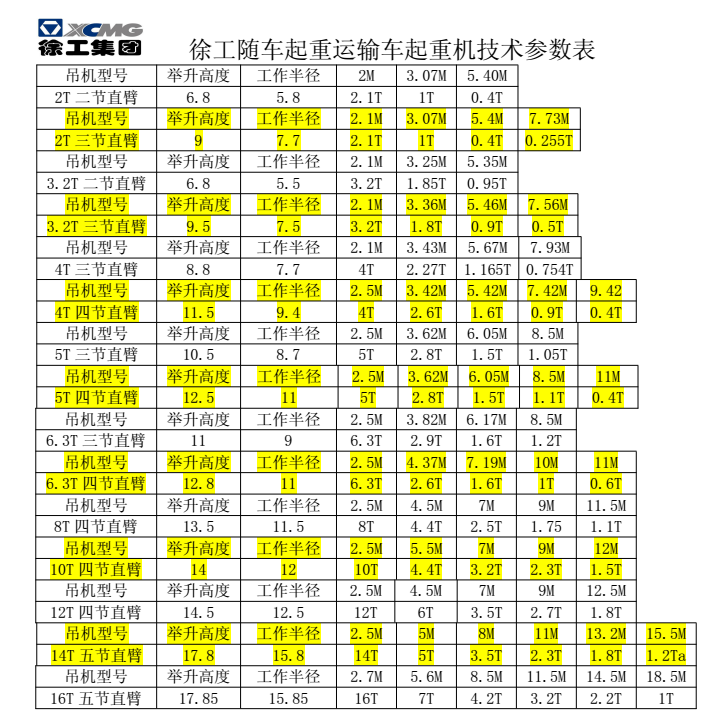 1、力矩:力矩=力×力臂,就是起重量和工作半徑的乘積。力矩是起重機(jī)的起重能力。每個(gè)規(guī)格的起重機(jī)的力矩是固定的。工作半徑越大,起重量就越小。工作半徑越小,起重量就越大。 5噸吊機(jī)的力矩 2.5 × 5 = 12.5噸.米 2.5米是起重機(jī)實(shí)際能夠起重的參考距離。 比如在3.5米的時(shí)候能吊多少? 12.5 ÷ 3.5 = 3.57噸 ![]() (考慮吊臂本身的重量后。實(shí)際吊重就要小于本身重量。) 20噸吊機(jī)的力矩 2.5×20=50噸在6米的時(shí)候能吊多少? 50 ÷ 6 = 8.3噸 (考慮吊臂本身的重量后。實(shí)際吊重要小于8.3噸。) 2、最大作業(yè)半徑:最大工作半徑是起重臂全伸水平時(shí),從立柱中心到吊鉤的長(zhǎng)度。 3、最大舉升高度:最大舉升高度是起重臂最大仰角及最大臂伸時(shí),吊鉤中心到地面的垂直距離。 4、支腿跨距:支腿跨距是水平油缸伸縮時(shí)兩支腿中心之間的水平距離。最大支腿跨距就是水平油缸全部伸出時(shí),兩支腿中心之間的水平距離。跨距大就越穩(wěn)定。 5、總質(zhì)量:總質(zhì)量=整備質(zhì)量+額定載質(zhì)量 下面以市場(chǎng)占有率最廣徐工吊機(jī)為例提供徐工吊機(jī)起重技術(shù)數(shù)據(jù)表,需要購(gòu)買(mǎi)隨車(chē)吊的用戶可以依照參考,結(jié)合自己實(shí)際情況,選擇一臺(tái)實(shí)用價(jià)值最好的隨車(chē)吊。 ![]() ![]() ![]() |
