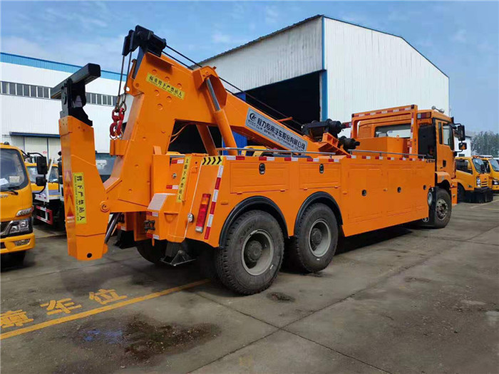 湖北程力國六陜汽德龍后雙橋重型清障車程力威牌CLW5322TQZS6型清障車配置: 陜汽德龍后雙橋拖吊聯體一拖一清障車配置: 采用濰柴336馬力,陜齒12擋變速箱,空調,斷氣剎,ABS,電動門窗,中控鎖,1100R20鋼絲胎。 20噸聯體式上裝,進口閥,二節式六邊型吊臂,三節托臂,分體式車廂,雙側聯動操作裝置,,兩個十噸液壓卷揚,四十五米鋼絲繩,直徑18MM,配四套鋼叉,一套拖叉套,一套鋼板吊耳拖叉,一套抱胎裝置,輔助燈一套,輔助氣管總成一套,捆綁鏈條兩根; 整車出具:底盤合格證、整車合格證、全國統一機動車上戶發票、隨車工具、車輛質保手冊、全國服務站點目錄等。 湖北程力國六陜汽德龍后雙橋重型清障車程力威牌CLW5322TQZS6型清障車多方位圖片: