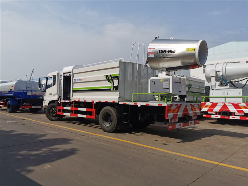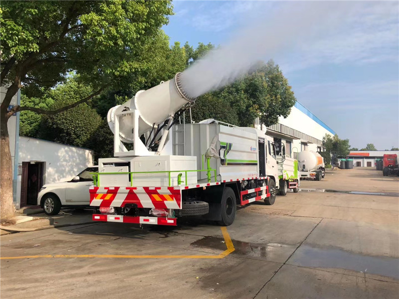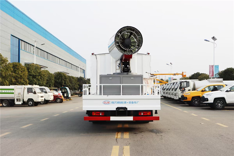 湖北程力國六東風(fēng)天錦60-100米抑塵車(方罐)程力威牌CLW5181TDYD6型多功能抑塵車廠家配置: 湖北程力國六東風(fēng)天錦抑塵車底盤配置:底盤采用東風(fēng)天錦國六底盤,公告型號:CLW5181TDYD6,康明斯6缸ISB210馬力發(fā)動(dòng)機(jī),4700軸距,275真空胎,6檔變速箱,原裝空調(diào),ABS。 湖北程力國六東風(fēng)天錦抑塵車上裝配置:罐體容積11.3立方,罐體為方形罐,罐體內(nèi)部做防腐,罐體鋼板采用Q235碳鋼鋼材,整車具備灑水車的一切功能(前沖、后灑、側(cè)噴、平臺高炮),氣動(dòng)球閥控制灑水功能,水位報(bào)警器,標(biāo)配億豐60/90水泵,自流閥及消防接頭各1個(gè)、水管2根。后平臺安裝一臺60米霧炮。 湖北程力國六東風(fēng)天錦抑塵車霧炮參數(shù):CLW-100型60米,副發(fā)電機(jī)組功率50(Kw),風(fēng)機(jī)功率15(Kw),不銹鋼多級離心泵功率5.5(Kw)。100米無線遙控操作,霧化距離60米(靜風(fēng)室內(nèi)距離)實(shí)際射程:(霧化射程會受濕度、溫度、風(fēng)速等各方面天氣因素的影響,另外天氣干燥地區(qū)一部分在空中被蒸發(fā)掉)。 | 湖北程力國六東風(fēng)天錦60-100米抑塵車(方罐)程力威牌CLW5181TDYD6型多功能抑塵車圖片價(jià)格: